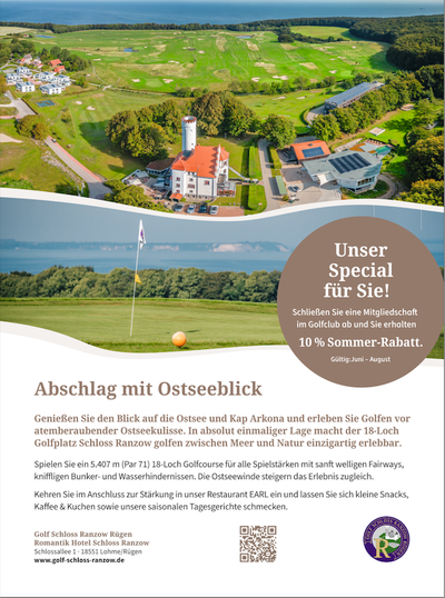 Genießen Sie den Blich auf die Ostesse und Kap Argon und erleben Sie Golfer vor atemberaubender Ostseekulisse. In absolut einmaliger Lage machen der 18-Loch Golfplatz Schloss Ranzow Golfen zwischen Meer und Natur einuzigartig erlebbar.