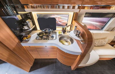DAS BAD. Beginnen Sie den Tag in einer Wellness-Oase! Das geschmackvoll eingerichtete Bad — optional mit separater Toilette — erstreckt sich über die gesamte Breite des Charisma und schafft ein ganz neues Raumgefühl. Genießen Sie die hochwertige Ausstattung mit Edelstahl-Armaturen von Hansgrohe sowie Flächen, Waschbecken und Duschwanne aus edlem Kunststein. Übrigens sind Sie dank des serienmäßigen 380-Liter-Wassertanks für lange Zeit unabhängig von externer Wasserversorgung. Und können in der großen Dusche nicht nur entspannt, sondern auch ausdauernd duschen.