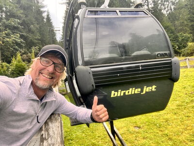 An Loch 12 beginnt die Flugshow. Per !!! GONDEL !!! werden wir und unser Equipment zum Abschlag transportiert. Oben angekommen schlagen wir die Bälle aus luftiger Höhe auf das 100 Meter weit entfernte Grün. Ein einzigartiges Par 3! Aber an der 13 wird es noch spektakulärer: Abschlag von 986 Metern über dem Meeresspiegel auf das fast 80 Meter tiefergelegene Fairway. Wahnsinn, wie lange ein Drive in der Luft sein kann.