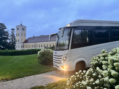 Der Dauerregen hat sich verzogen. Die Route ins Salzburger Land ist offen. Nach einer aufregenden Fahrt über die Tauernautobahn erreichen wir mit dem Concorde Charisma am späten Abend den Golfclub Radstadt. Große Stellplätze speziell für Wohnmobile machen das Ankommen einfach: Parken, Strom anschließen, Nachtlager vorbereiten. A guats Nächtle!