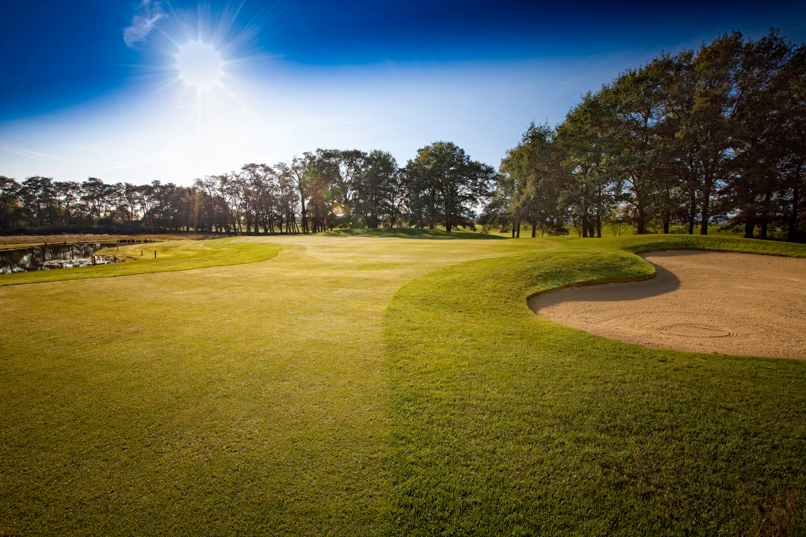 Die abwechslungsreiche Platzarchitektur mit zahlreichen anspruchsvollen Wasser- und Bunkerhindernissen sowie einem imposanten alten Baumbestand verleiht dem Platz seine Charakteristik als typischer Parkland Course.