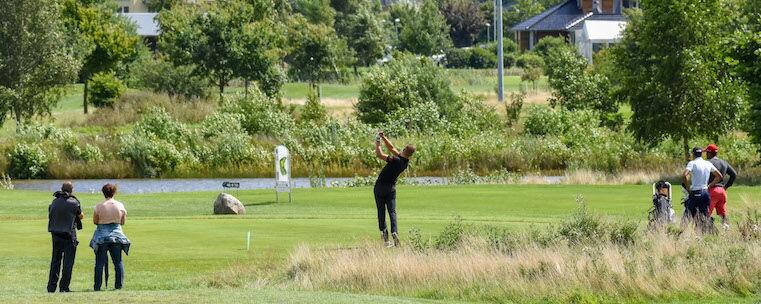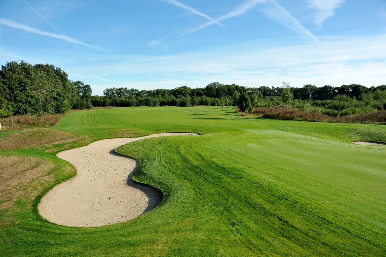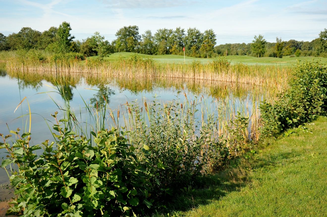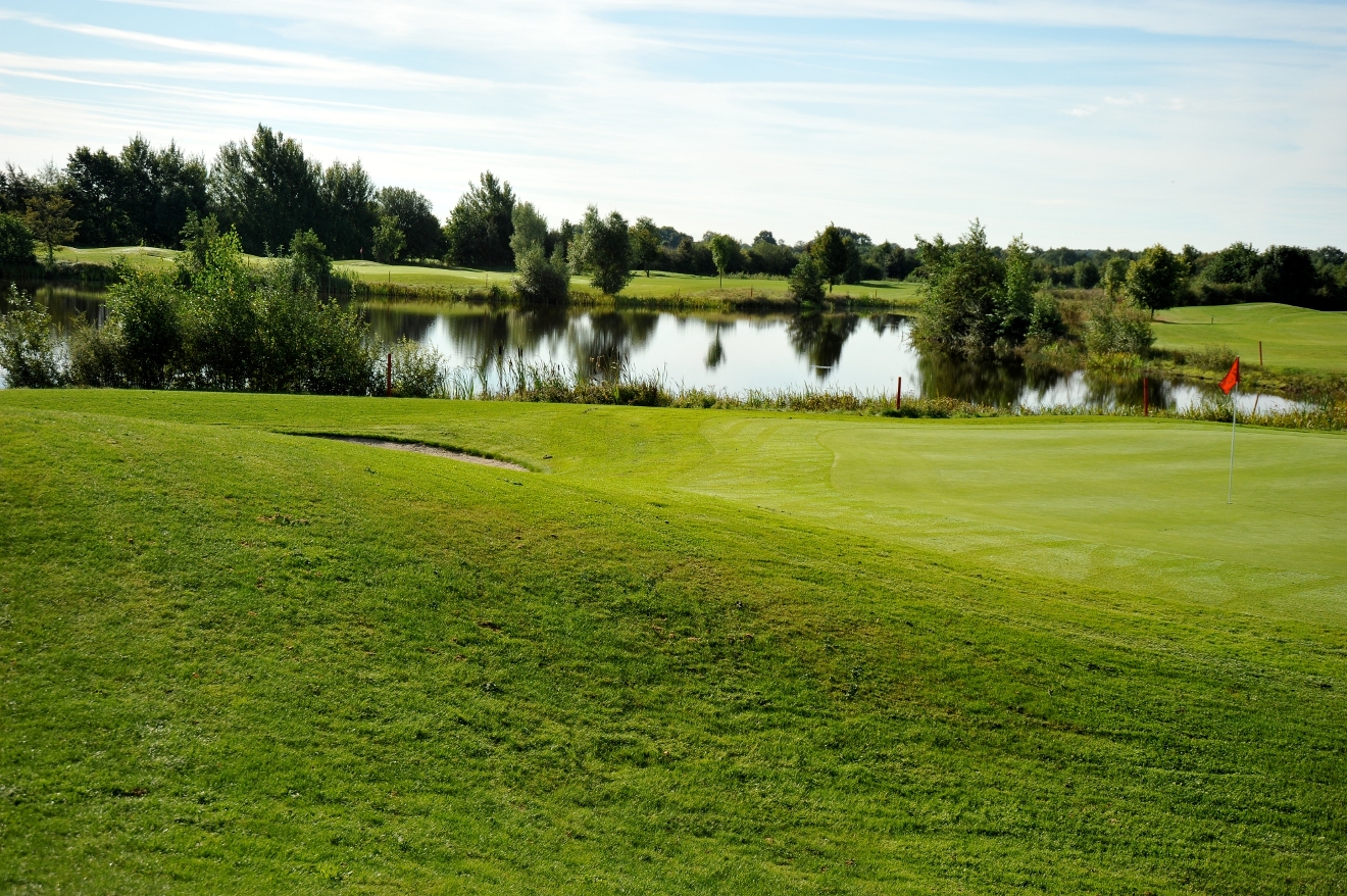 Die Bahnen der 18-Loch-Meisterschaftsanlage bieten mit fünf Abschlägen für Golfer aller Handicapklassen adäquate Schwierigkeitsgrade. Fast 3,5 ha Wasserfläche mit zahlreichen Neuanpflanzungen, 800 Bäume und 30.000 Sträucher geben dem Platz seinen unverwechselbaren Charakter. Dank guter Drainage ist der Platz auch dann bespielbar, wenn andere geschlossen werden müssen. Unser 9-Loch-Kurzplatz ist ideal zum Trainieren des kurzen Spiels. Die große, teils überdachte Driving-Range und die Übungsanlage sind optimale Voraussetzungen für Training und Entspannung nach Feierabend.