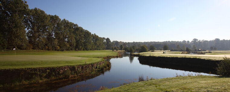 - Typisches Landschaftsbild: spannende Wasserhindernisse, flache offene Anlage