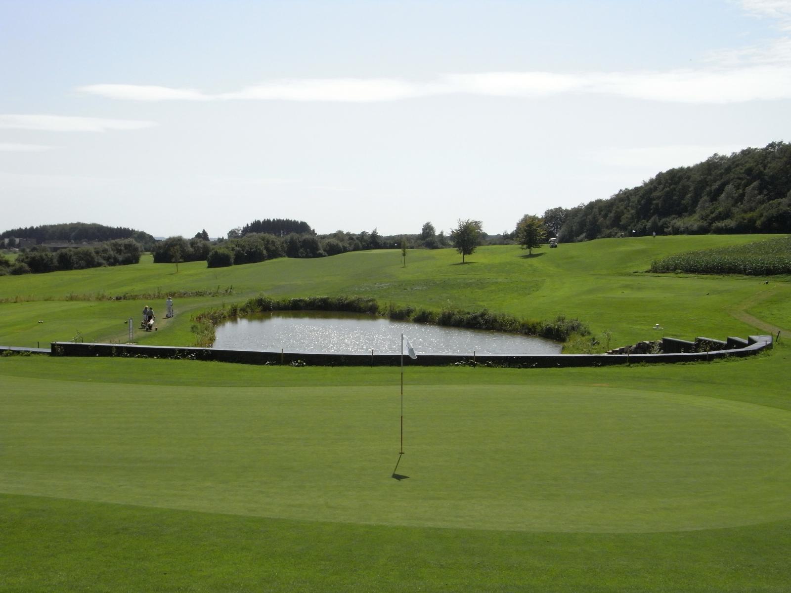 Harmonisch in das nicht zu hügelige Gelände eingebettet, macht der Platz auf den ersten Blick einen spielerisch freundlichen Eindruck mit seinen großen Grüns und breiten Fairways, wobei er sich beim Spielen als golferische Herausforderung erweist, ob nun für den einstelligen Handicapper oder für den Anfänger. Dank der großen und traumhaften Teiche, die beim Bespielen von fünf Bahnen auf den ersten 9 Löcher mehrfach ins Spiel kommen und dem absichtlich geringen Baumbestand, ist seine Schönheit, vor allen Dingen das in der Sonne glänzende Wasser, von fast überall auf dem Platz zu genießen. Der Platz fordert mehrere lange und präzise Abschläge, besonders an den Löchern 3, 6, 9,16 und 18, aber bietet trotzdem überall Spielfreude und Genusserlebnisse - wenn man z.B. das Grün 17 erreicht hat, ist die Freude groß!