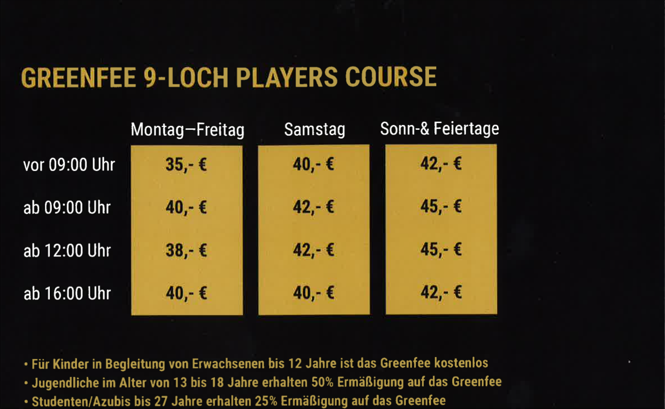 Studenten und Auszubildende bis 27 Jahre erhalten 25% Ermäßigung auf das Players Course Greenfee.