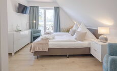 Kombinieren Sie Sport und Erholung. Direkt am Hotel liegt der 18-Loch-Platz des Golfclub Weselerwald. Genießen Sie nach Ihrer Golfpartie ein gutes Essen und die exklusive Wellnesslandschaft auf 4.000 m². Für Sie als Golfer bereits inklusive: 1 Golfball „Voshövel Edition“ auf dem Zimmer, Verpflegung im Rahmen der Voshövel-Kulinarik .... ab 2 Nächten ab € 1085,— pro Person // Schlafzimmer Cosy Fuchsbau