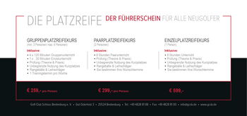 Wir bieten Ihnen verschiedene Modelle eines Platzreifekurses, damit Sie auf Ihre ersten eigenen Golfrunden gut vorbereitet sind: