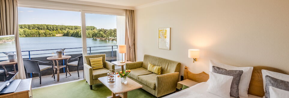 … Ihr Hotelzimmer, großräumig, gemütlich und mit viel Platz. Ihr Balkon mit Aussicht auf den glitzernden See. Nah am Wasser, nah an der Erholung.