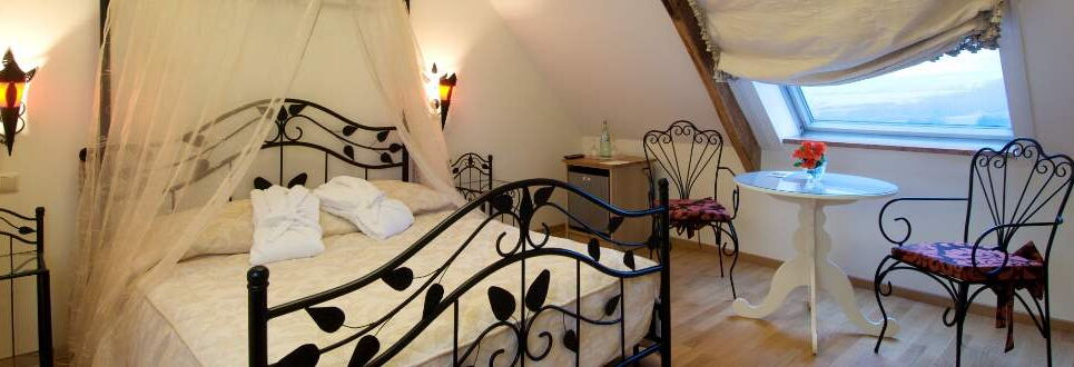Die Zimmer sind ausgestattet mit Himmelbett, Minibar, LCD-TV, Bademantel, Hausschuhe, Haartrockner, Bad mit WC, Badewanne oder Dusche, Schminkspiegel, Toilettenartikel,…