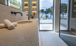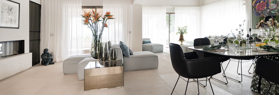 Schon beim Öffnen der Eingangstür liegt Veränderung in der Luft. Der Weg führt direkt in den Wohn- und Essbereich mit großzügigem Esstisch und stilvollen, bequemen Sitzmöbeln. Ein magischer Ort entsteht, geschaffen für gemeinsame Stunden mit Familie oder Freunden. Die Veranda lockt. Der Blick schweift übers Meer, ein Glas Rosé in der Hand. Genau so fühlt sich der perfekte Urlaub an.