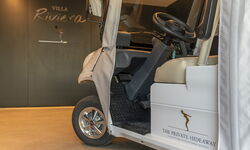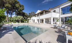Das Haus bietet jeglichen Komfort: ein beheizbarer Pool im üppigen mediterranen Garten, eine Sauna, ein separates Arbeitszimmer und die kostenlose Nutzung des hauseigenen Golfcarts für Ausflüge ans Meer, zum Golfplatz oder zum Yachthafen.